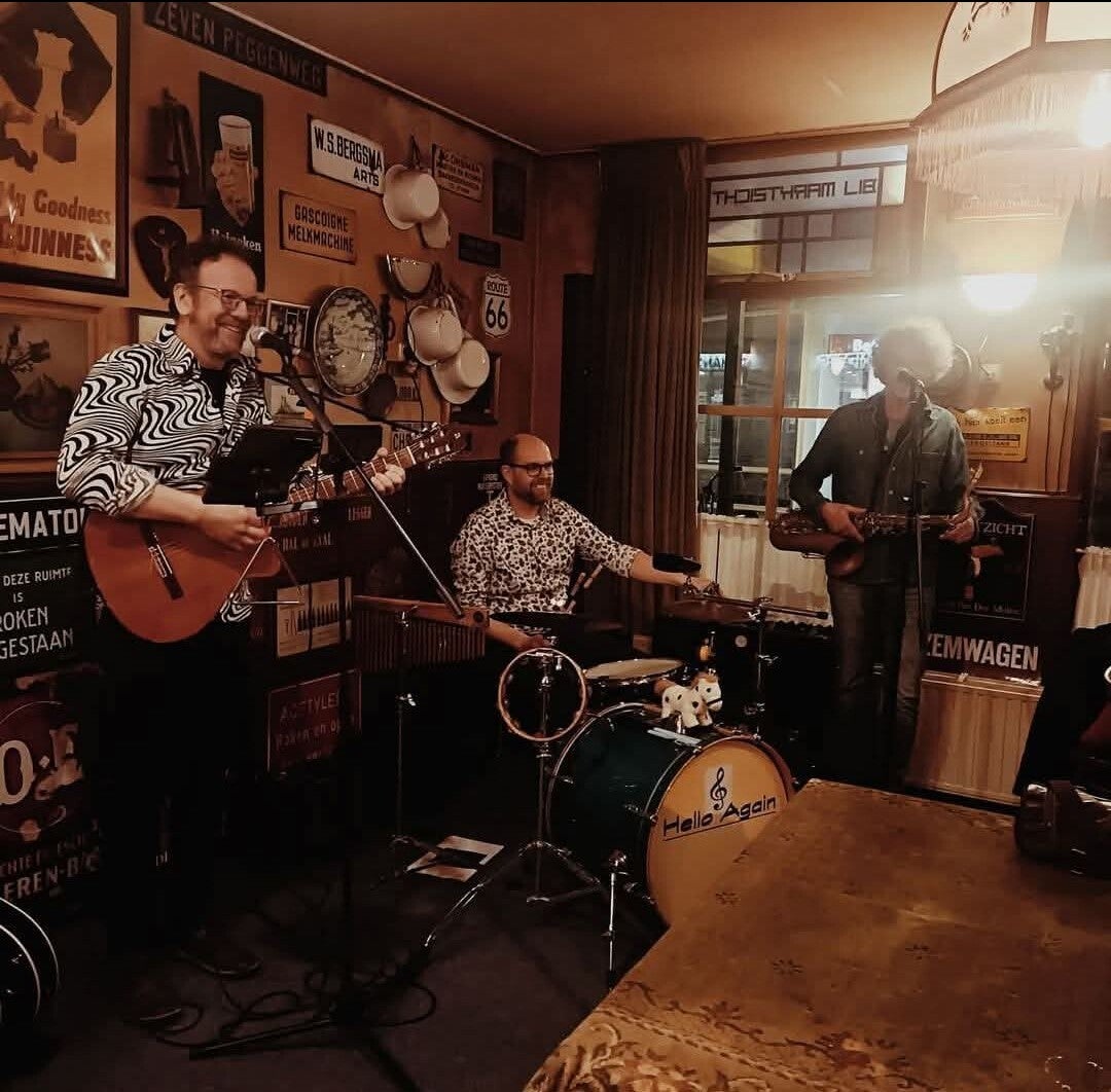 Hello Again is een 3 mans covermuziek band gevestigd in Dokkum met een passie voor het maken van muziek. Met een repertoire uit de jaren 60 70 zorgen wij voor entertainment op maat. Of het nu gaat om een straatfestival,cafe, kroeg, buurthuis of prive feestje , met onze jarenlange ervaring kunnen wij uw gelegenheid onvergetelijk maken.